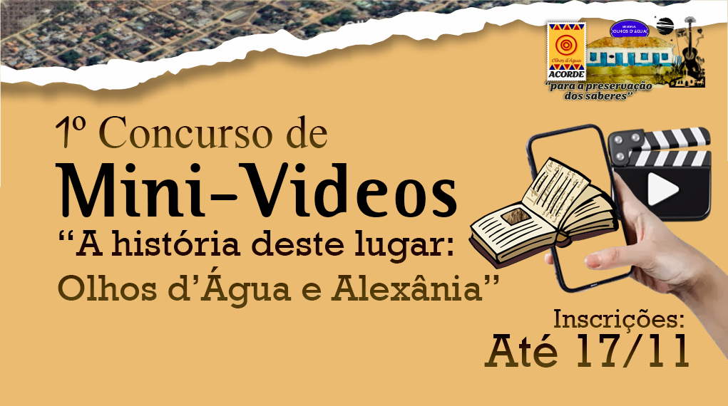 O projeto ACORDE – Para a Preservação dos Saberes, torna público o Edital do 1º Concurso de Mini-Vídeos “A história deste lugar: Olhos d’Água e Alexânia” Nº 1/2025, voltado para alunos da rede pública de ensino do município de Alexânia e do distrito de Olhos d’Água.